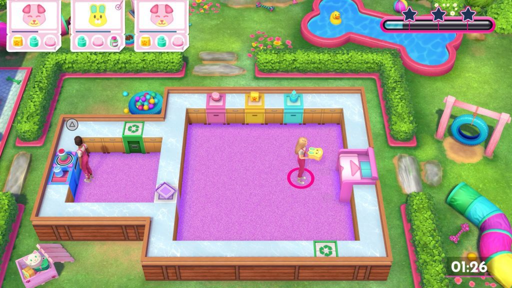 Doch bis es soweit ist, gibt es noch viel zu tun, denn so eine aufwendige Renovierung braucht Zeit und richtig viel Reparaturarbeit. Deshalb machen wir uns gleich auf den Weg, um allen Barbies im Freizeitpark Malibu Waves zu helfen, damit Stück für Stück wieder Ordnung einkehrt. Dabei folgt das Spiel einer Slice of Life Story, die sogar mit einer gelungenen deutschen Übersetzung punkten kann. Sogar die Dialoge sind komplett vertont, was das Spielerlebnis noch lebendiger macht und Spieler jeden Alters in die bunte Welt von Barbie und ihren Freunden eintauchen lässt.