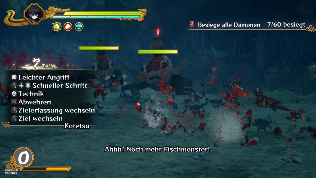 Was den Story-Modus so besonders macht, ist nicht nur die Inszenierung, sondern auch die Vielzahl neuer Mechaniken, die gezielt auf das narrative Erlebnis abgestimmt wurden. Dazu gehören innovative Minispiele, wie Zenitsus Shamisen-Einlage, sowie erweiterte Erkundungsmechaniken. Letztere nutzen beispielsweise Tanjiros Geruchssinn, um die Umgebung zu erkunden und emotionale Zustände wahrzunehmen. Auch im Kampf gibt es Neuerungen. So lassen sich etwa zwei Unterstützerfiguren parallel einsetzen oder ganze Gegnergruppen in speziellen Hordenabschnitten bekämpfen. Diese neuen Ansätze verleihen dem Story-Modus eine eigene Dynamik und heben ihn spürbar von einer reinen Nacherzählung der Anime-Vorlage ab.