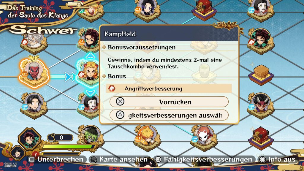 Zusätzlich hat man nun die Möglichkeit, die Haupt-Bosskämpfe aus dem ersten Teil von Demon Slayer –Kimetsu no Yaiba– The Hinokami Chronicles im Modus „Path of the Demon Slayer“ auf verschiedenen Schwierigkeitsgraden erneut zu erleben. Eine weitere bemerkenswerte Ergänzung ist der „Training Paths“-Modus, ein pfadbasierter Herausforderungsmodus, in dem man sich Schritt für Schritt in Richtung eines ausgewählten Hashira vorarbeitet. Auch hier stehen verschiedene Schwierigkeitsgrade zur Auswahl. Auf den einzelnen Pfaden können verschiedene Sammelobjekte freigeschaltet werden. Zufällige Begegnungen und Herausforderungen für Buffs in den einzelnen Kämpfen sorgen für eine hohe Wiederspielbarkeit dieses Modus.