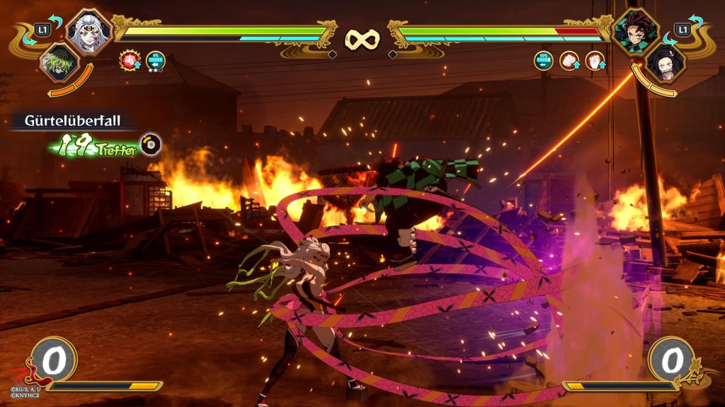 Demon Slayer –Kimetsu no Yaiba– The Hinokami Chronicles 2 erweitert das Kämpferaufgebot erheblich. Zehn neue Charaktere feiern ihr Debüt und werden durch sieben Rückkehrer aus dem ersten Spiel ergänzt. Diese waren zuvor als kostenpflichtiger DLC verfügbar und sind nun fest im Basisspiel enthalten. Insgesamt stehen somit 17 zusätzliche Figuren zur Verfügung. Das ist ein deutlicher Zuwachs an strategischer Vielfalt und spielerischer Abwechslung. Darüber hinaus können einige Dämonen nun im Team kämpfen, was neue strategische Möglichkeiten eröffnet. So können beispielsweise Daki und Gyutaro als Team eingesetzt werden, ähnlich wie die Slayer.