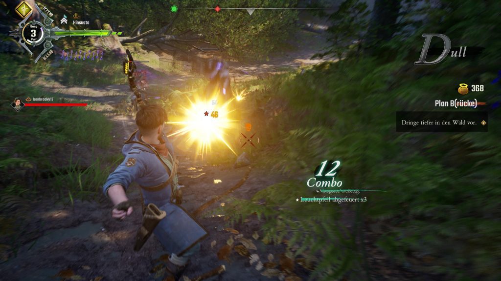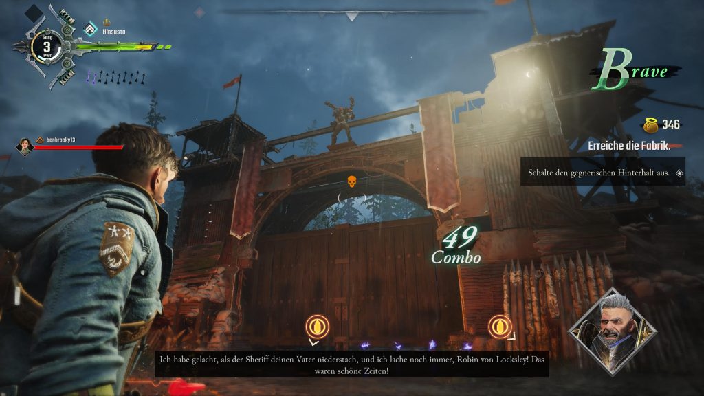 Das Gameplay hingegen ist spaßig und die Kämpfe machen unglaublich viel Spaß. Gerade im Koop blüht Gangs of Sherwood auf und überzeugt mit seinem Kampfsystem. Hier ist Teamwork gefragt und man kann perfekt zusammenarbeiten. Jeder Charakter hat einzigartige Fähigkeiten, um unsere Gegner zu besiegen. Hier stehen uns zahlreiche Kombos zur Verfügung, um die Adeligen auszuschalten. Neue Fähigkeiten lassen sich auch in der Basis freischalten, die wir gegen das gesammelte Gold aus den Missionen eintauschen können. Die Kämpfe machen Spaß und überzeugen. Zu bemängeln ist allerdings, dass die Auswahl an Missionen sehr gering ist, so dass auf Dauer keine Abwechslung geboten wird.