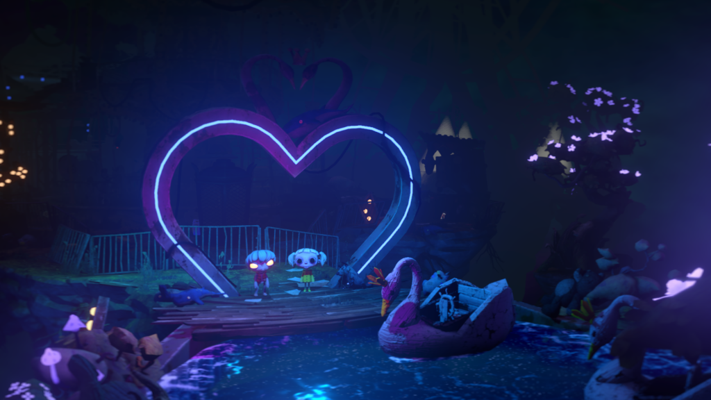 In Gloomy Eyes übernehmen wir die Kontrolle über den liebenswerten Zombiejungen Gloomy und das reizende Menschenmädchen Nena. Die beiden Außenseiter müssen sich zusammenschließen und alle Regeln missachten, um gemeinsam das Licht wiederherzustellen. Diese ungewöhnliche Partnerschaft bildet nicht nur das Herzstück der herzerwärmenden Geschichte, die von einem ergreifend-tragischen Märchen des Grabwächters erzählt, sondern auch das Kernelement des Gameplays. Als Spieler sind wir gefordert, abwechselnd die besonderen Fähigkeiten der beiden Charaktere einzusetzen, um anspruchsvolle Umgebungsrätsel zu lösen. Nena verfügt über die Fähigkeit, sich durch schmale Spalten zu zwängen, während Gloomy in der Lage ist, starke Hebel zu betätigen oder Gegenstände zu bewegen. Diese geschickte Kombination aus Einzelspieler-Kooperation und dem ständigen Wechsel zwischen den Charakteren ist durchdacht, motiviert zum Weiterspielen und lässt einen rasch mit den beiden Protagonisten mitfiebern.