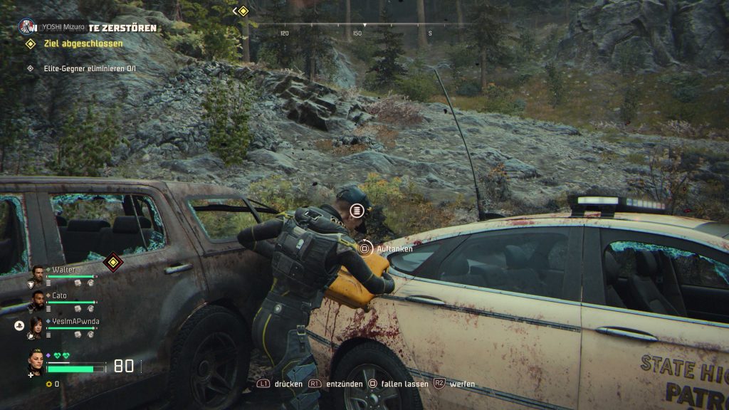 Ein wichtiger Bestandteil des Gameplays sind außerdem Fahrzeuge, die in vielen Missionen genutzt werden. Sie dienen nicht nur als Transportmittel durch die zerstörten Städte, sondern müssen auch gepflegt werden. Spieler reparieren Schäden, tanken Treibstoff nach und setzen die Fahrzeuge taktisch ein. Eine besondere Funktion ist die Winde, mit der das Fahrzeug von unten nach oben gezogen werden kann, um steile Hindernisse oder schwierige Passagen zu überwinden. Zusätzlich steht ein Krankenwagen zur Verfügung, der das gesamte Team heilen kann und in kritischen Situationen einen entscheidenden Vorteil bietet.