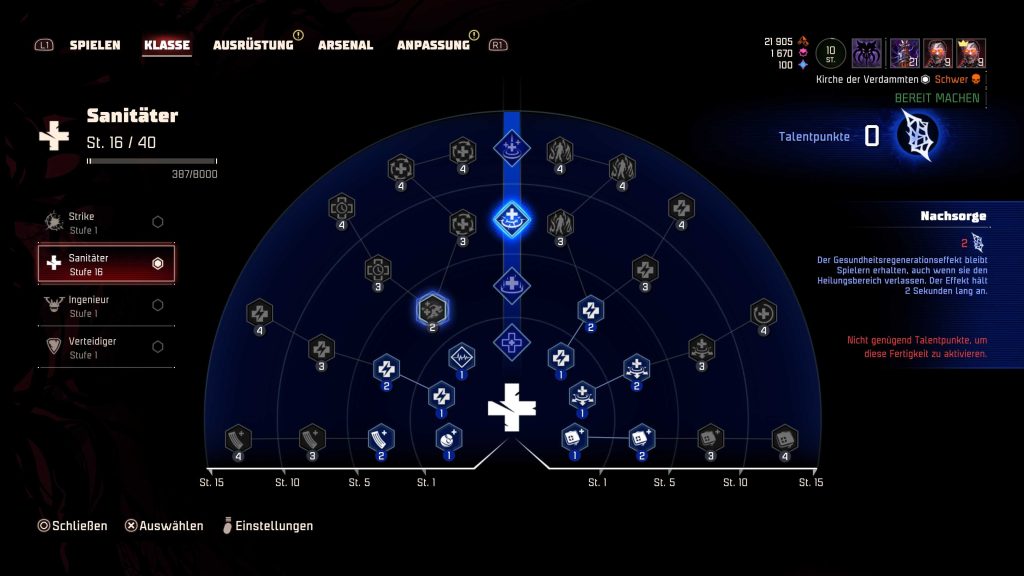 Ein weiteres Problem ist das Progressionssystem. Um das maximale Level einer Klasse zu erreichen, muss man sehr viel Zeit ins Grinden investieren. Selbst auf höheren Schwierigkeitsgraden fällt die Belohnung eher mager aus. Beispielsweise erhält man für Missionen auf „Sehr schwer“ deutlich zu wenig Erfahrungspunkte, um wirklich spürbare Fortschritte zu machen. Hier sollte dringend nachgebessert werden, damit sich der Spielfortschritt motivierender anfühlt.
