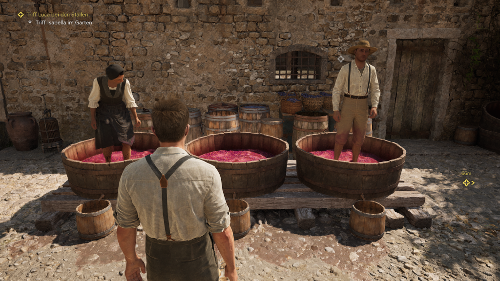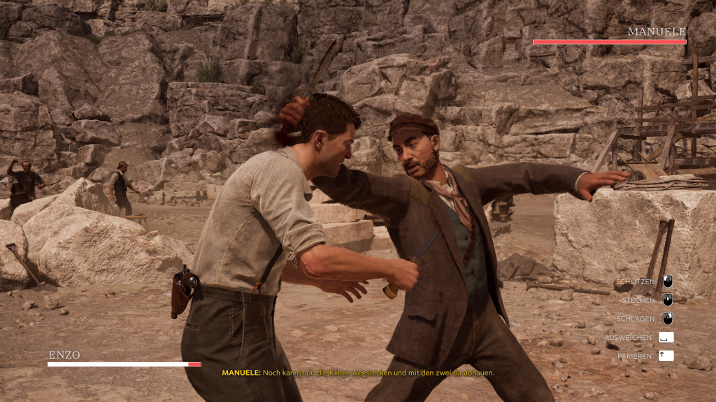 Das Gameplay präsentiert eine solide Mischung aus Third-Person-Action und Abenteuer. Die Schießereien mit historischen Waffen wie der abgesägten Flinte Lupara wirken dabei sehr kraftvoll. Auch die Nahkämpfe mit dem Stilett sind brutal inszeniert und spiegeln die Härte der damaligen Zeit wider. Ergänzt wird dies durch die Möglichkeit, Feinde heimlich auszuschalten. Die Steuerung von Automobilen und Pferden ist gut gelungen, was die Erkundung der sizilianischen Landschaft zu einem wahren Vergnügen macht. Allerdings offenbart sich hier auch ein erheblicher Nachteil: Der begrenzte Wiederspielwert. Die Struktur des Spiels ist sehr linear, und es gibt kaum optionale Nebenziele. Der Missionsbereich ist beschränkt, so dass man nicht immer die Welt erkunden kann. Nach einmaligem Durchspielen mag die Motivation, in Enzo Welt zurückzukehren, begrenzt sein. Die Spielzeit von etwa 10 bis 15 Stunden ist zwar kurz, allerdings bekommt man ein cinetastisches Abenteuer geboten, welches durchweg spannend bleibt. Wer jedoch die Welt frei erkunden möche, der kann nach dem zweiten Kapitel im Free-Roam Modus noch fehlende Sammelobjekte sammeln.