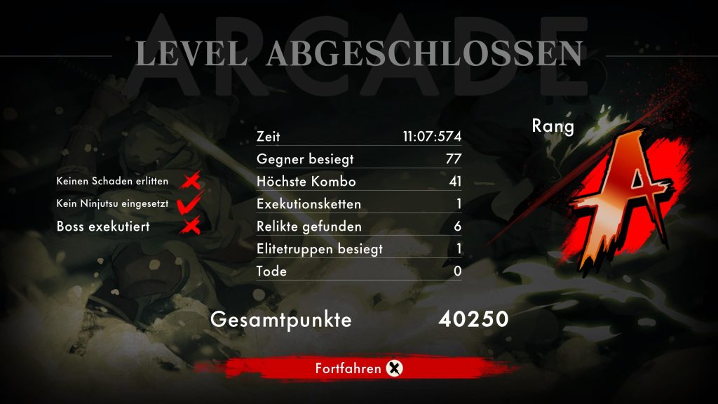 Auch nach dem ersten Durchgang bleibt genug zu tun: S-Ränge, versteckte Items und der Boss-Rush-Modus halten den Wiederspielwert hoch und machen besonders Completionists und Trophäen-Jäger glücklich. SHINOBI: Art of Vengeance ist ein gelungener Mix aus klassischem Ninja-Feeling, moderner Action und motivierendem Gameplay – ein echtes Highlight für Fans von schnellen, stylischen 2D-Action-Titeln.