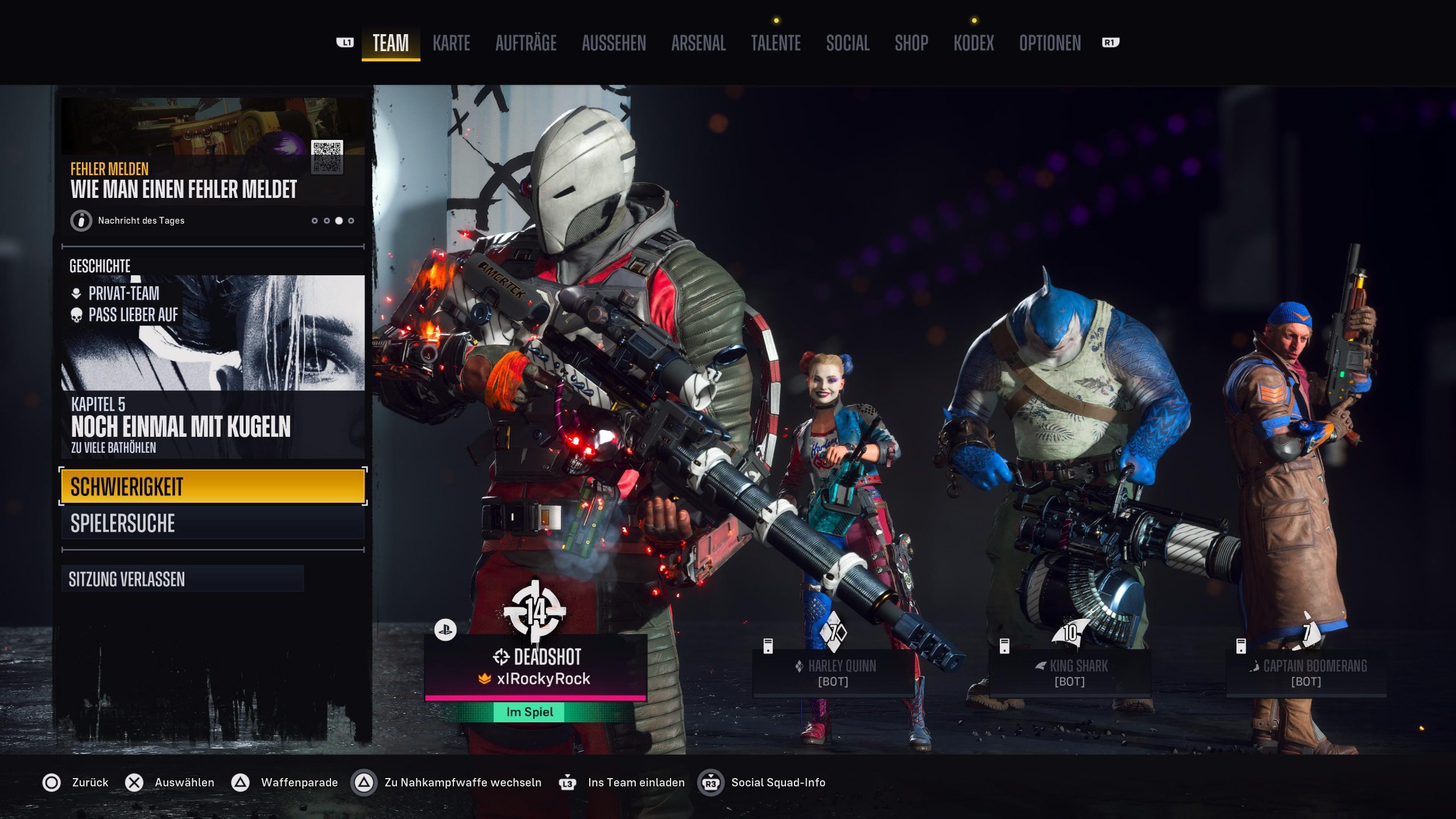 „Suicide Squad: Kill the Justice League“ ist ein Spiel, das man sowohl im Einzelspielermodus mit Bots als auch mit bis zu drei weiteren Freunden spielen kann. Dabei bietet uns das Spiel mit jedem Charakter die unterschiedlichsten Fähigkeiten, so dass wir spielerisch eine gute Abwechslung bekommen. Das fängt bei der Fortbewegung an und hört beim Kämpfen auf. Hier zeigt sich jeder Charakter von Suicide Sqaud von seiner besten Seite, wodurch die einzigartigen Fähigkeiten gut zur Geltung kommen. Das liegt nicht nur an den Fähigkeiten, sondern auch an den sehr gelungenen Animationen, die die Mimik perfekt rüberbringen. Bevor wir jedoch loslegen, entscheiden wir uns, ob wir das Abenteuer als Einzelspieler oder im Mehrspielermodus beginnen wollen. Der Ein- und Ausstieg ist jederzeit problemlos möglich.