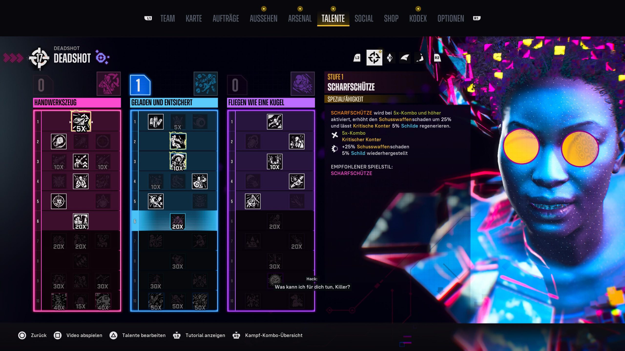 Wenn wir genug Aufgaben erfüllen, können wir uns besser ausrüsten und sogar unser Aussehen verändern. Außerdem stehen uns Talente zur Verfügung, mit denen wir neue Fähigkeiten erlernen können, um in den Kämpfen besser zurechtzukommen. Hier stehen uns für jeden Charakter gleich drei Talentbäume zur Verfügung, mit denen wir unseren Spielstil individuell anpassen können. Gefällt uns ein Skill nicht, können wir jederzeit problemlos umskillen und so viele neue Fähigkeiten ausprobieren. Das maximale Level von 30 ist mit jedem Charakter schnell erreicht, aber danach können wir im Gruppenlevel aufsteigen und so noch stärker werden. Es bleibt abzuwarten, ob die zukünftigen Aktivitäten zu einfach werden, denn man darf nicht vergessen, dass es sich bei Suicide Squad: Kill the Justice League um ein Live-Service-Spiel handelt, das uns ständig mit neuen Inhalten versorgen möchte.