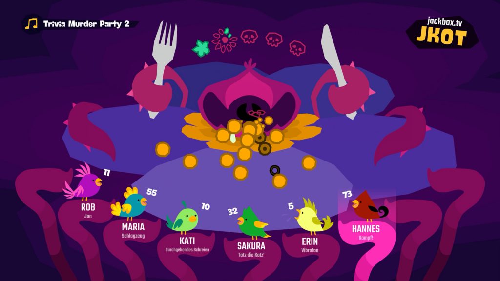 In The Jackbox Party Pack 10 erwarten uns diesmal fünf verschiedene Spiele, die Freundschaften zerstören können. Das kultige Partyspiel setzt dabei auf sein altbekanntes Muster und glänzt dieses Mal mit einem neuen Partyspiel. Mit dabei sind das kultige Tee K.O 2, Fixy Text, Dodo Re Mi, Timejinx und Hypnotorius. Neu ist, dass die Spiele Dodo Re Mi und Timejinx auch alleine gespielt werden können, was wir an dieser Stelle aber nicht empfehlen. Kommen wir nun aber zum Highlight von Jackbox und das ist für uns Dodo Re Mi!