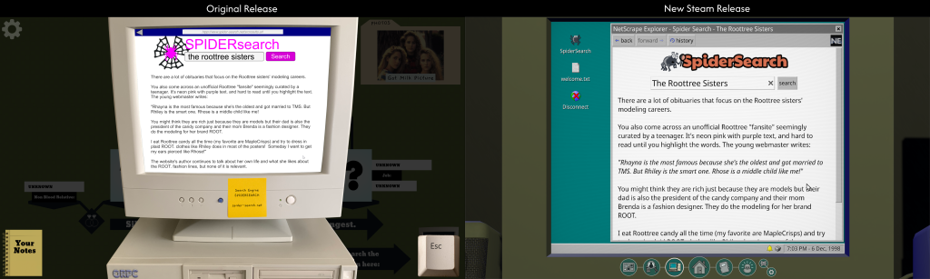 Intuitive Werkzeuge, komplexe Herausforderungen. „The Roottrees are Dead“ ist im Wesentlichen ein deduktives Puzzlespiel, das Liebhaber von Titeln wie „The Case of the Golden Idol“ oder „Return of the Obra Dinn“ ansprechen dürfte. Das Gameplay dreht sich darum, logische Schlussfolgerungen aus gesammelten Beweisen zu ziehen. Wir verwenden authentische Webtools aus den 90er Jahren, um Informationen zu finden und Verbindungen aufzudecken.